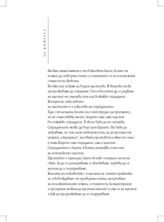Без кал няма лотоси е необикновена книга, която ни помага да отворим очите и съзнанието си за истинската същност на живота.