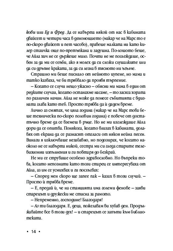 – Ще пуснат едно семейство за пробен период – уточни татко. – И ако стане, смятаме, че ще позволят и на всички останали да се заселят тук.