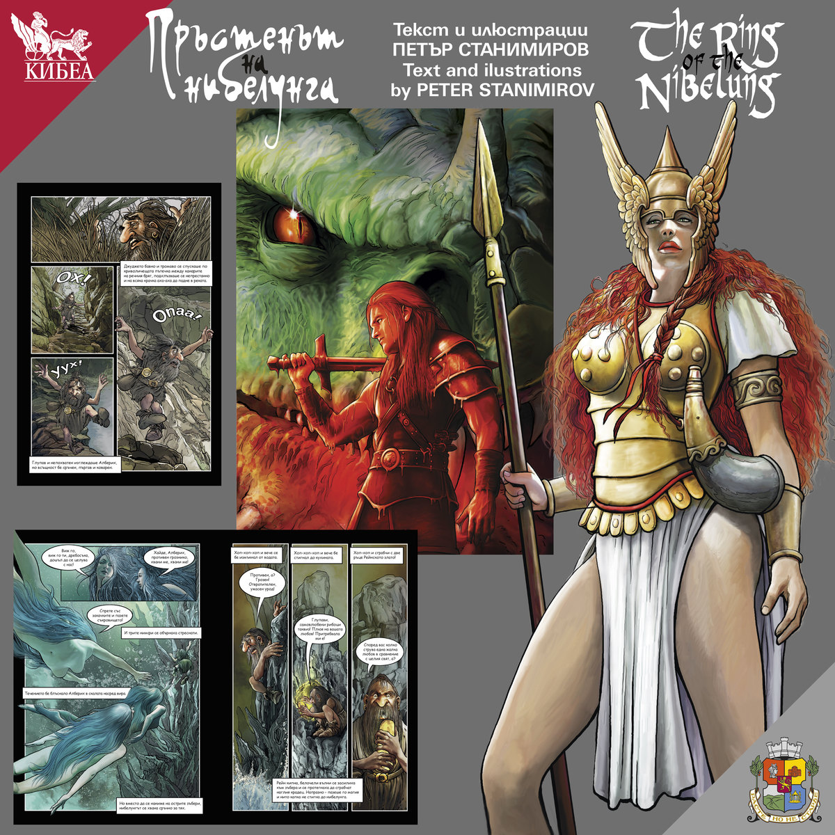 В изложбата са включени избрани авторски илюстрации от албумната тетралогия „Пръстенът на нибелунга“ и от едноименния комикс. И двете са създадени по либретото на Вагнер специално за възрастова аудитория 10+. Уникалните рисунки на Петър Станимиров зрелищно пресъздават перипетиите на героите във фентъзито за митичната сила на властелина Пръстен, покваряващ света на джуджета, валкирии, богове, великани и дракони. Още по-впечатляващи са илюстрациите, раздвижени в 3D и 2D чрез безплатното приложение за мобилни устройства KIBEA, което приковава вниманието на младия читател с помощта на т.нар. „добавена реалност“ (augmented reality).