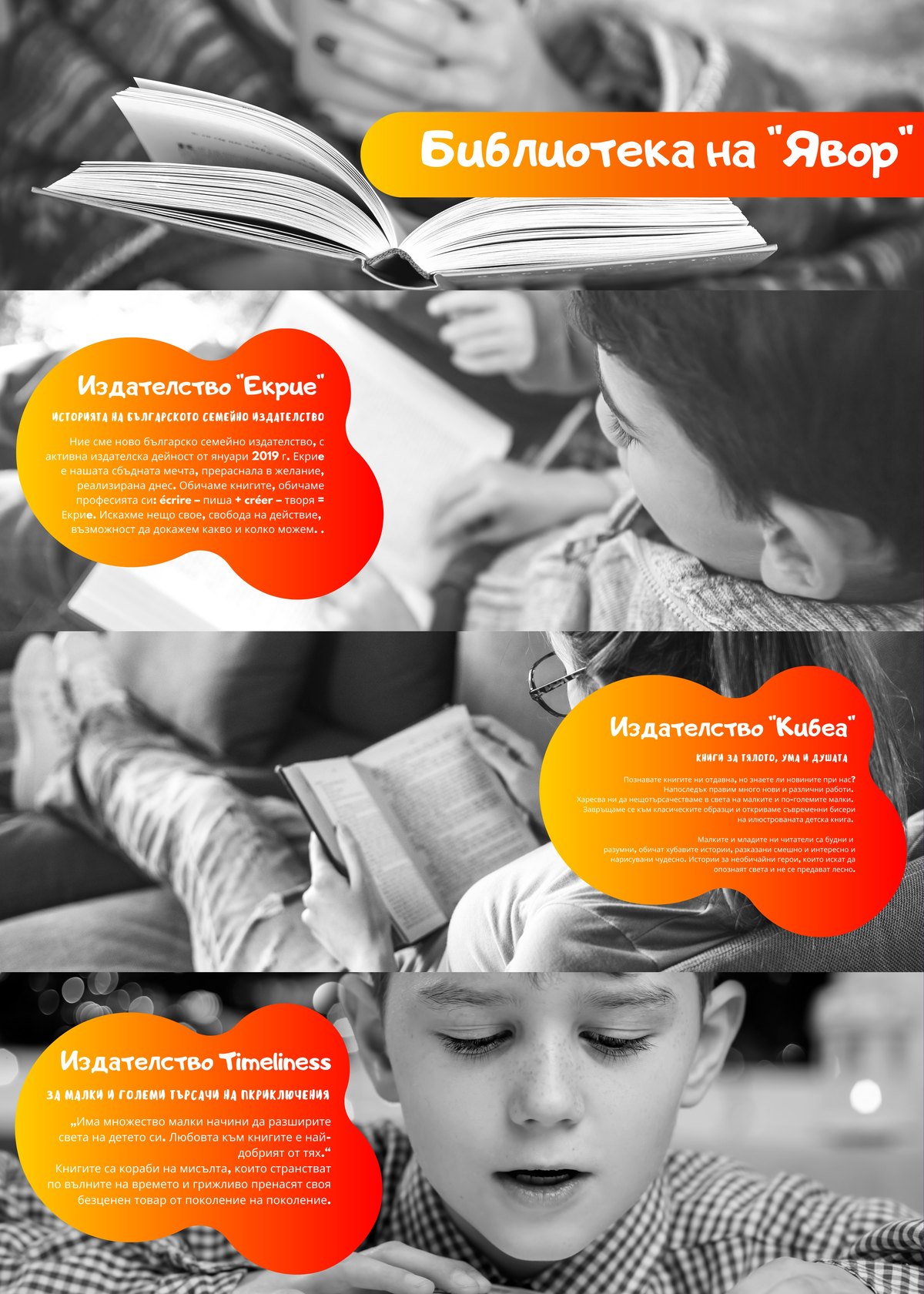 Ще намерите книгите на КИБЕА в т.нар. Библиотека „Явор“, обособена до входа в залата. С 20% по-достъпни ще са нашите заглавия, подбрани за очакваните над 7000 гости на събитието. Сред тях са най-актуалните и най-награждаваните ни книги за деца, както и евъргрийни в областта на саморазвитието.