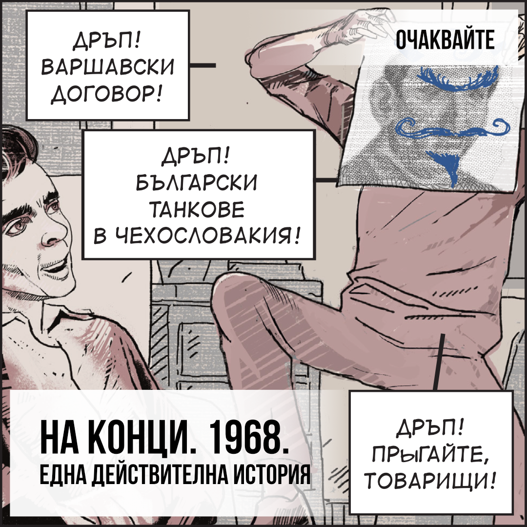 Графичната новела на Веселин Праматаров е без прецедент в историята на българския комикс. Тя съпреживява смелостта на трима български студенти след историческата Пражка пролет през 1968 г. Погледът на художника е на височината на героите, деликатните метафори и философските диалози надскачат политическите клишета и превръщат комикса в истинско събитие за жанра в България.