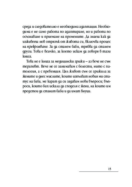 Да станеш баба в наши дни означава да се почувстваш завладяна от нова енергия, означава да изживееш втора пролет. Но също е и момент на нестабилност и вътрешна трансформация. Ето защо воденето на разговори на тази тема е от съществено значение, така че всеки да намери своето място в семейството: бабите и дядовците; децата, станали родители; зетьовете, снахите и, разбира се, внучките и внуците.