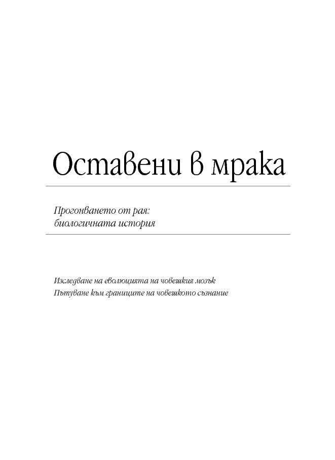 „Книгата „Оставени в мрака“ предлага напълно нов подход за възприемане на развитието и разделянето на мозъчните функции при човека между лявото и дясното полукълбо. Теорията изложена тук е изключително свежа, неочаквана и нова, така че най-вероятно ще отнеме доста време преди еволюционни антрополози и психолози да започват да я възприемат, но идеите ще окажат въздействие. Тя може и трябва да се вземе предвид в бъдеща дискусия за произхода и еволюцията на човека“ – споделя в свое изказване Колин Гроувс, професор по биологична антропология в Училището по археология и антропология към Австралийския национален университет и автор на няколко книги, включително „A Theory Of Human And Primate Evolution and Bones, Stones and Molecules“. Според него изложената теория е напълно нов поглед върху еволюцията на човешкия мозък.