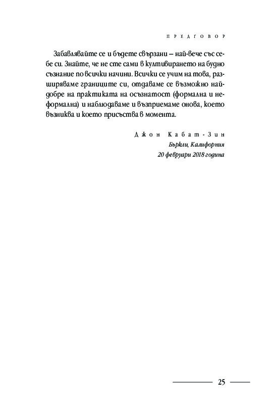 Четири десетилетия Джон Кабат-Зин преподава осезаемите ползи от медитацията в ежедневието. Днес милиони хора практикуват медитация за осъзнатост и подобряват качеството си на живот.