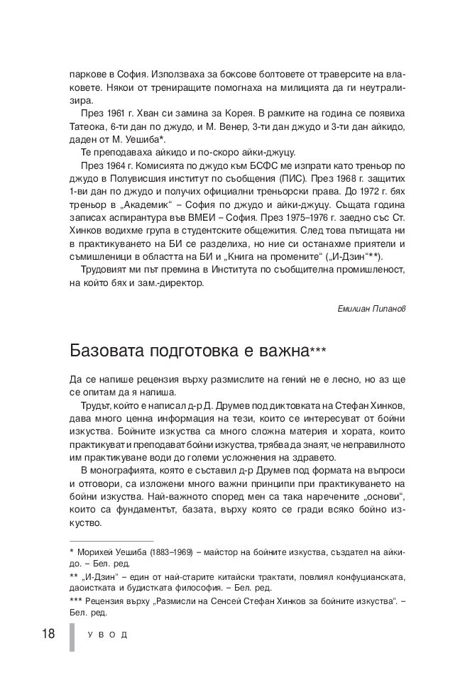 Историята на източните бойни изкуства в България няма как да отмине книгата „Размисли на Сенсей Стефан Хинков за бойните изкуства“, защото тя самата се съдържа в нея.